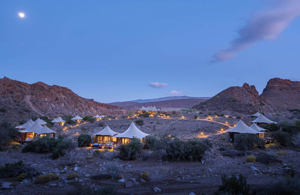 Sanbona Wildlife Reserve is an exclusive 5-star game reserve nestled in the Warmwaterberg Mountains in the Klien Karoo. A mere 3-hour drive from Cape Town, the magnificent landscape is so much more than just a game reserve, it is a 58 000-hectare wilderness sanctuary comprising open plains, river valleys, and mountains brimming with indigenous flora and fauna. It is a true haven for photographers, with ideal lighting and awe-inspiring sightings. The 5-star Sanbona Dwyka Tented Lodge is located on an eroded landscape with a charming reflection of the nomadic lifestyle of the Khoisan hunter-gatherers who once wandered this land. Sanbona Dwyka Tented Lodge boasts 9 standalone luxury tented suites, the perfect place to wind down and relax in-between the exciting safaris activities.