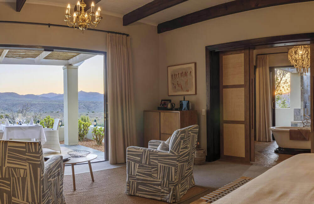 Sanbona Wildlife Reserve is an exclusive 5-star game reserve nestled in the Warmwaterberg Mountains in the Klien Karoo. A mere 3-hour drive from Cape Town, the magnificent landscape is so much more than just a game reserve, it is a 58 000-hectare wilderness sanctuary comprising open plains, river valleys, and mountains brimming with indigenous flora and fauna. It is a true haven for photographers, with ideal lighting and awe-inspiring sightings. Sanbona Tilney Manor offers a luxurious contemporary lodge boasting exceptional service and hospitality. Cool down in the rim-flow swimming pool after fabulous Big 5 game drives and enjoy a sundowner while soaking in breath-taking sunsets over expansive African landscapes. Tilney Manor is a true haven for relaxation. In Addition to Sanbona Tilney Manor, the private reserve is home to 5-star Dwyka Tented Lodge, a family-friendly lodge and an eco-camp.