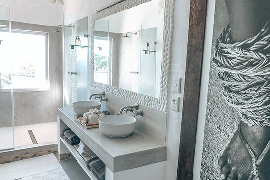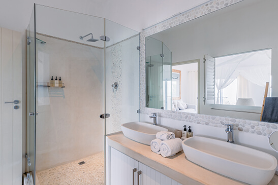 This spacious sea-facing suite has its own private patio overlooking the archipelago comprising an ocean view bath and shower hidden behind a beautiful stone curtain for privacy. The suite features a king size bed with fully fitted mosquito netting, air-conditioning Read more, bathroom with double shower and vanity unit, separate toilet and all of the finest amenities. Less