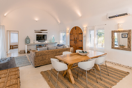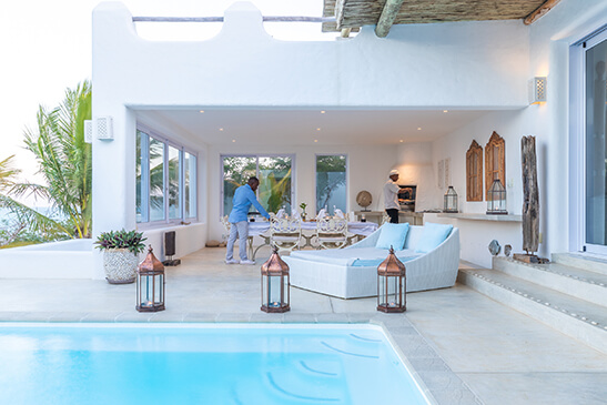 The Main Villa at Santorini Mozambique features five luxurious ocean-chic suites which are each named after the islands of the archipelago. Each suite boasts an ensuite bedroom that leads out onto an exclusive patio with breathtaking ocean views. The Chapel and Villa da Praia are two private-use villas offering large, shaded patios with a barbecue, a selection of areas to unwind, and private rim-flow pools boasting panoramic vistas over the glistening Indian Ocean. A private host and personal chef accompany each villa catering to every detail. Menus feature a variety of seasonal ingredients, vibrant colours, and meticulously paired flavours. Fresh produce is harvested from the Villa’s own garden and seafood is fresh from the ocean daily. A day of extraordinary adventures will work up your appetite for a sumptuous four-course dinner, thoughtfully prepared for your indulgence.