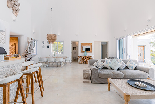 This 2 bedroom exclusive use villa has direct beach access overlooking the archipelago and is accompanied with a private chef and host. The villa features a lounge, kitchen, dining area and large covered patio with a rim flow pool Read more. The two bedrooms with King size (or twin) beds are en-suite, the master bedroom has a bath and separate toilet. Less