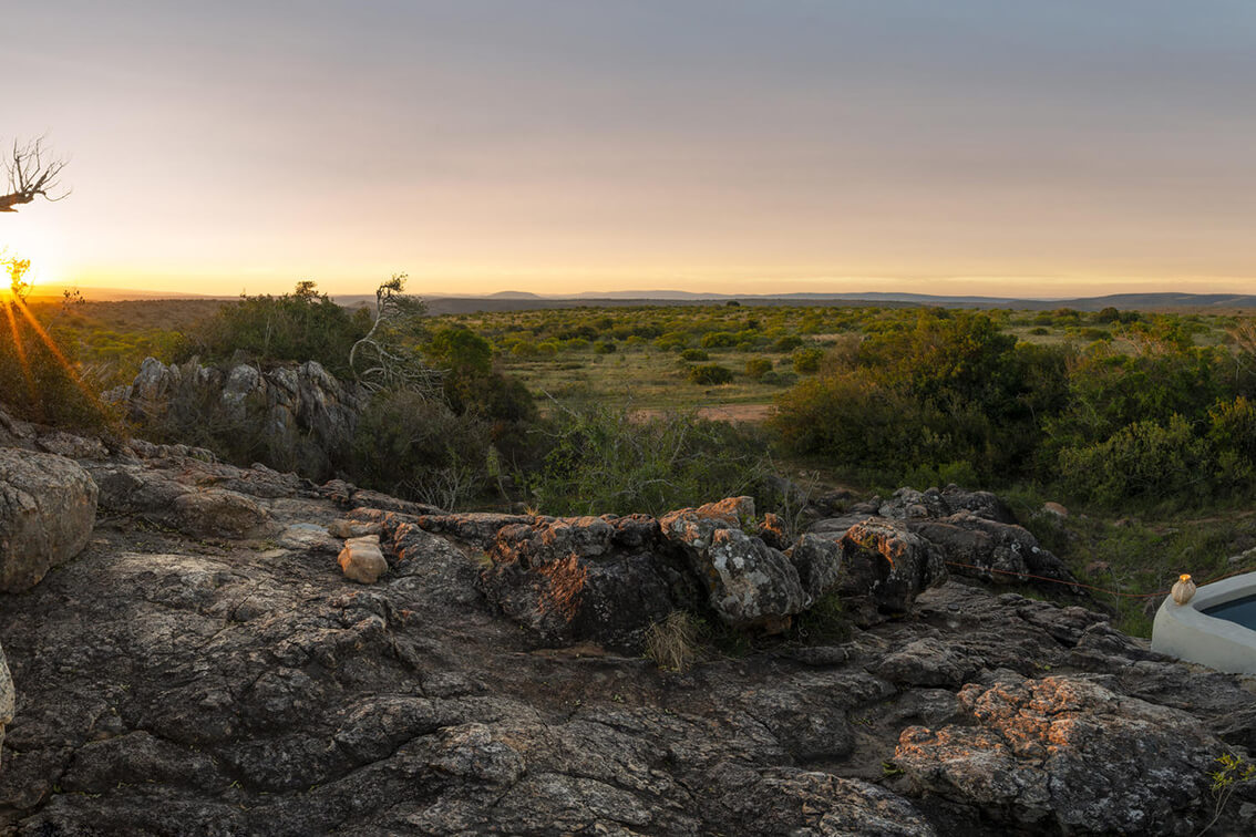 For the adventurous at heart who are not too concerned about life’s luxuries, indulge yourself in the essence of nature in this authentic African bush experience at Shamwari Explorer Camp in the Eastern Cape. The Explorer Camp is discreetly fenced for safety reasons and is offered as a 2 or 3-night expedition, available seasonally from October to May. Three tents are located in a magical bush setting and facilities include a viewing deck, plunge pool, and dining lounge. Wake up to coffee served in front of your tent and enjoy culinary campfire feasts under the stars. There is a portable bar to enjoy your drink of choice out on the viewing deck. This incredible Eastern Cape safari experience is completely off the grid, allowing guests to get in touch with nature and learn about the fundamentals of wildlife and the reserve.
