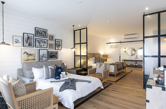 The newly renovated Riverdene Family Lodge at Shamwari Game Reserve boasts a fantastic family-friendly Eastern Cape safari experience. The 5-star lodge offers activities for kids at the Adventure Centre and a glorious pool with a shallow swimming area for children. The lodge boasts a stunning bar and lounge as well as a boma overlooking the beautiful Bushman’s River. Every aspect of the lodge is exceptional from its world-class facilities to the decor and delicious African cuisine. Activities at Riverdene Family Lodge include bushwalks, birding, conservation and rehabilitation centre visits. Exclusive packages for groups and families can be arranged with private safari drives and exclusive accommodation.