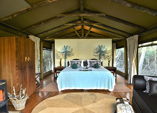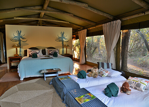 - Only 4 luxury tented suites nestled among indigenous riverine trees.
