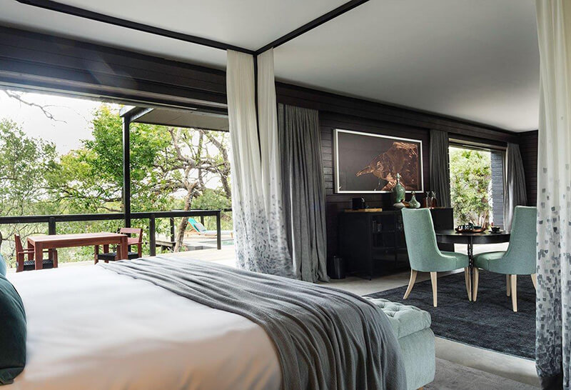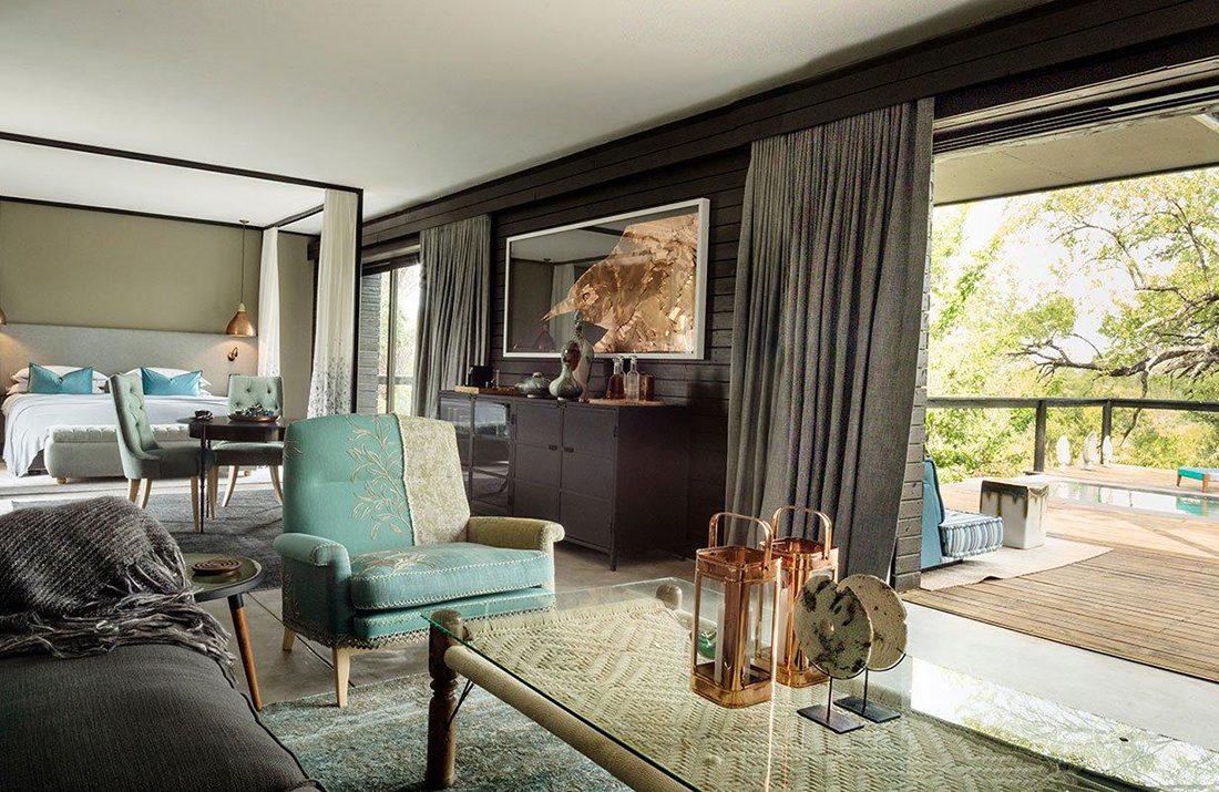 The gentle blue and grey tones are inspired by the Blue Guarri tree and creates an atmosphere best described as a haven of peace and calm. The super spacious suite features a lounge, en suite bedroom, private deck Read moreand plunge pool overlooking the reserve. Less