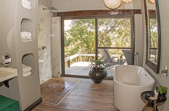 These romantic suites are slightly larger and come with added amenities. They have a shower, free-standing bath, his and her sinks and modern finishings as the other suites, but come with an added lounge area for more space. Read moreThe outside deck, however, is still what our honeymooners love most. The extensive bush-facing deck, with a plunge pool and shaded sala bed, is the perfect place to spend a hot afternoon in the sun. Less
