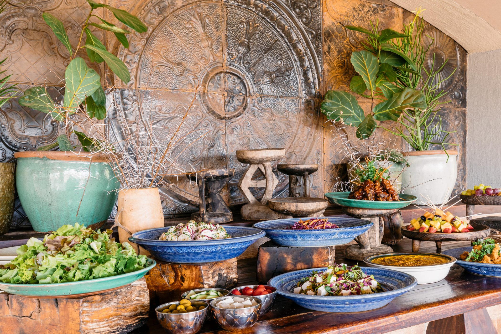 - Dinners are served à la carte or fireside under the stars in the outdoor boma