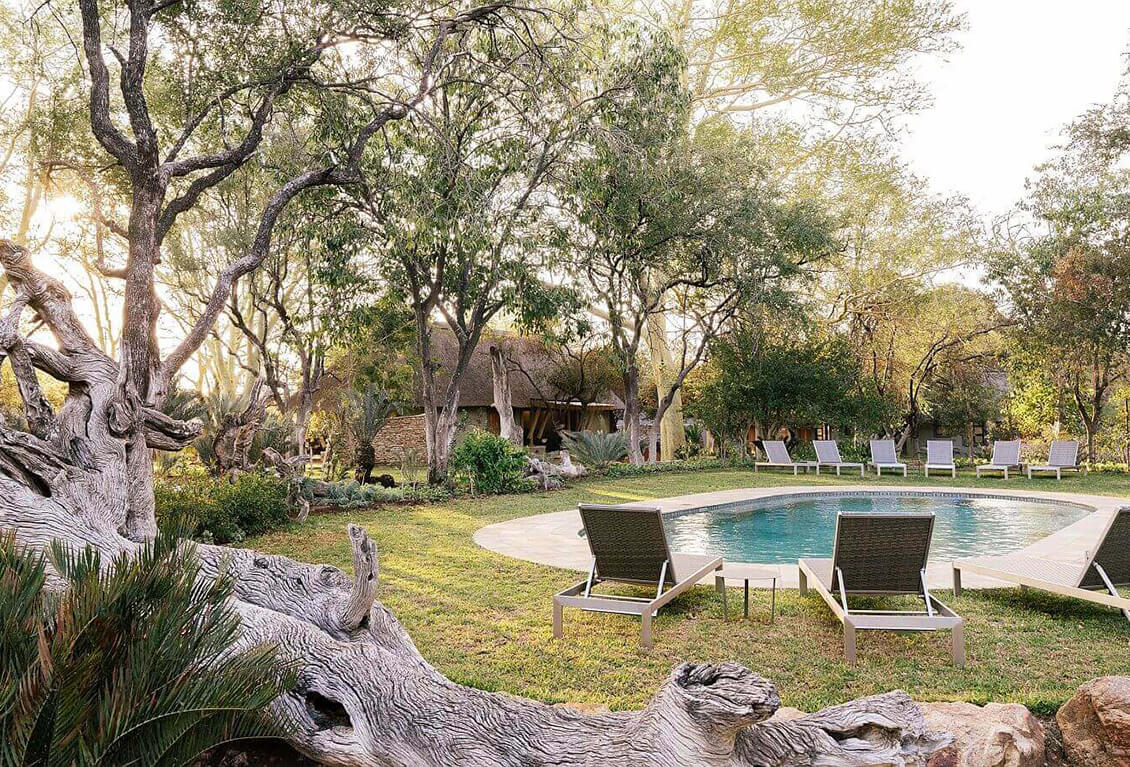 Camp George offers an oasis of tranquillity within the wilds of the Klaserie Game Reserve. It is a classic safari escape, set alongside a dry riverbed and within lush indigenous gardens Designed for couples, family and friends, this intimate lodge comprises eight luxury suites, each with its own private deck. This elegant safari lodge is the perfect mix of authentic tradition with a modern twist. The convivial and art-filled living areas lead out to expansive terraces. Beyond lies the mature indigenous garden which naturally evoke a sense of tranquillity and relaxation. Enjoy the serenity of the many huge fever and baobab trees, read a book in the swing chair, or watch the game at the waterhole where animals come to drink through the day.