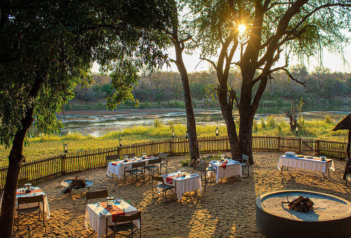 - Traditional open-air African Boma for dinners under the stars and a camp-fire overlooking the river.