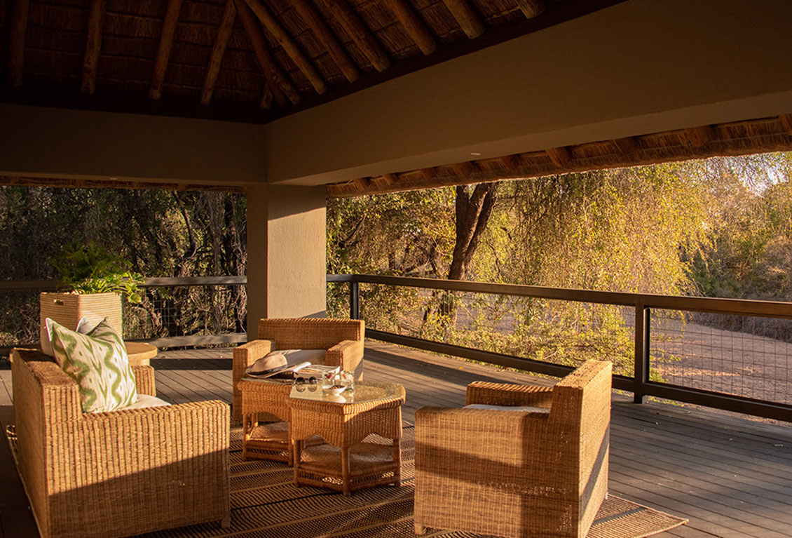 The private setting features two suites, separated by a large lounge and living area. Neutral colour palettes blend seamlessly with the natural setting all while maintaining an elegant and contemporary feel. The warm and inviting main lodge area opens onto an expansive deck for a superb indoor-outdoor living experience. The villa features a custom-designed waterfall pool where you can cool off in the heat of summer and even view wildlife gathering at the waterhole. Winter evenings can be spent cosying up at the fireplace with a glass of wine. With a private safari vehicle and expert ranger leading your daily wildlife adventure, you can be ensured exceptional photographic opportunities and game drives tailored to your needs.
