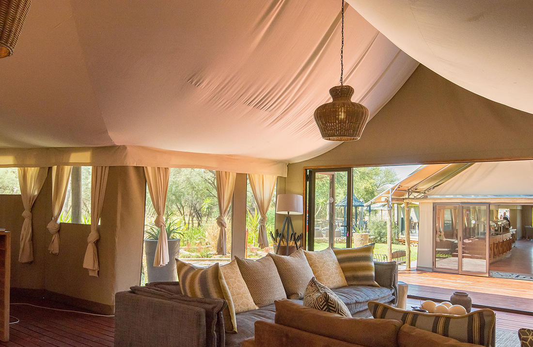 The lodge main area features a semi-open-air lounge, bar, and dining area that overlook the waterhole. Delectable buffet breakfasts and lunches can be savoured in the dining area or outdoor deck while dinners are a celebration under starlit skies in one of the cosy bomas.