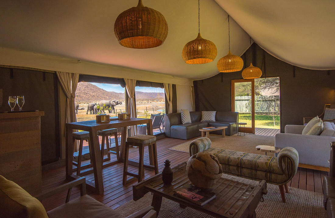 When not viewing wildlife from your private suite or the lodge’s viewing lounge, you’ll be heading out on a game drive with an expert ranger to spot the Super Seven (Big Five, endangered African wild dog, and cheetah) among a host of other wildlife and bird species.