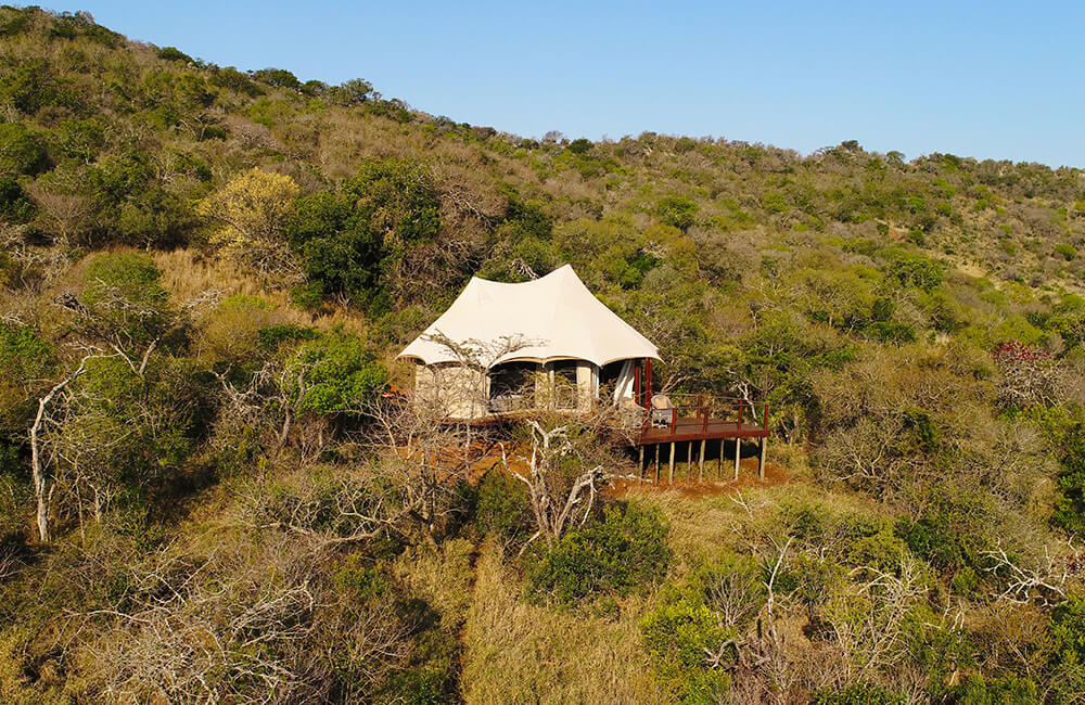 Experience an authentic tented safari in an enchanting bush setting at Thanda Tented Camp in KwaZulu Natal. With 15 tents in total, including one opulent honeymoon tent, guests at Thanda Tented Camp can immerse themselves in the essence of nature in style. Thanda Private Game Reserve provides 14000 hectares of protected territory for Big 5 game viewing, remarkable wildlife sightings and is home to over 400 bird species.