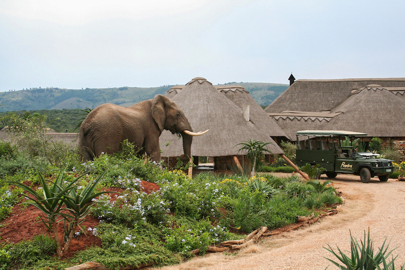 Pumba Bush Lodge is a luxurious 5-star safari retreat situated within the Pumba Private Game Reserve, offering exceptional game viewing right from the lodge. Its prime location provides sweeping views over a nearby waterhole from a spacious wooden viewing deck. The lodge’s amenities include a fire pit with seating, a restaurant, a bar, an outdoor boma, a curio shop, a spa, and a fitness centre, ensuring a comfortable and enjoyable stay.