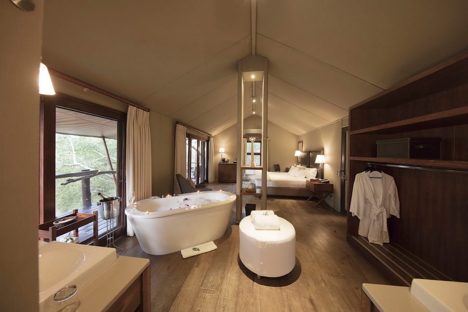 A tented luxury suite overlooking the Timbavati Private Nature Reserve