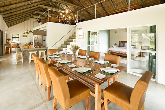 The Timbavati Homestead is located on the banks of the Timbavati River. Consisting of 4 spacious en-suite bedrooms, an outside safari bath, kitchen, upstairs and downstairs lounge area and a bar. This home is equipped to make your stay comfortable and memorable. Read moreWith a fully-catered or self-catered option available, the Timbavati Homestead is ideal for families or groups traveling together. Less