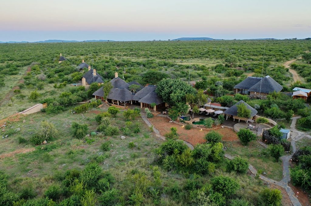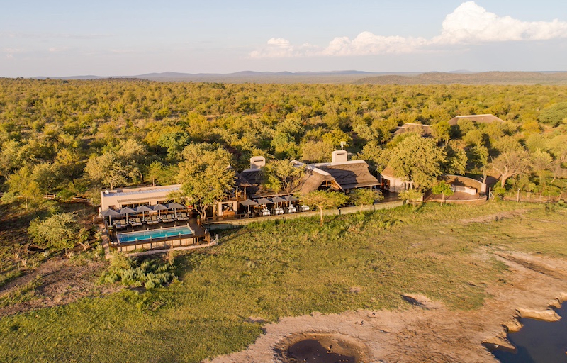 A birds-eye view of the main lodge at Mateya Safari Lodge.