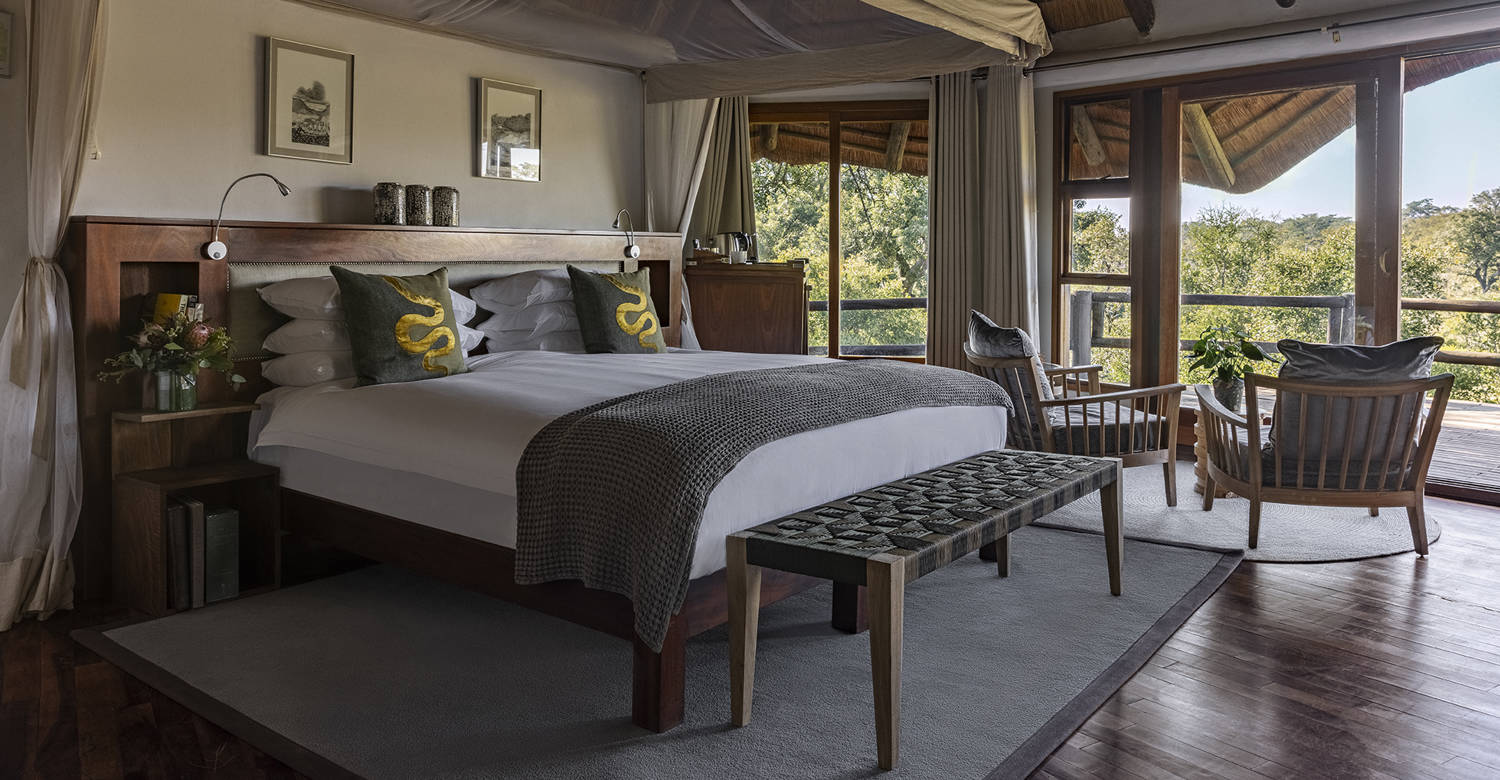 Perched amidst a canopy of trees with exceptional views, Ulusaba Safari Lodge consists of eleven luxurious suites, accessed by swing bridges and raised walkways, heightening the sense of an African bushveld adventure. Lodge facilities include a sparkling swimming pool, fitness centre, a wine cellar, and relaxing spa. Safari Lodge is home to one Treehouse Suite for guests seeking luxurious seclusion, while other suites boast views overlooking the local watering hole where wildlife gather to drink. One River Room features a private plunge pool for secluded relaxation and the ultimate luxurious safari experience. Besides traversing the land on a safari drive, Ulusaba Safari Lodge allows you to explore nature en-foot on a guided bushwalk, enjoy stargazing, birdwatching, community tours, and candle-lit dinners under the Milky Way.