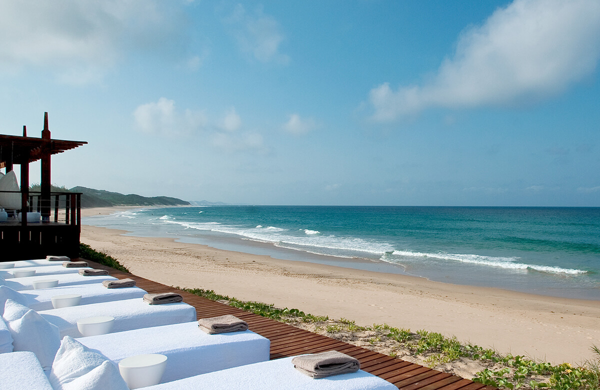 White Pearl Resorts lies nestled in a sheltered bay on Mozambique’s southeast lagoon coast, just 25 kilometres north of the South African border. With over 2 kilometres of serene beachfront surrounded by indigenous fauna, the setting for your tropical escape couldn’t be more perfect. Twenty-two luxurious ocean-facing suites are constructed on timber stilts among the dunes. The units are thoughtfully designed to offer seamless integration into the surrounding beauty while protecting the fragile eco-systems below. Inspired by the surrounding landscape, cool contemporary furnishings in light palettes ooze sophistication while offering an inviting and unpretentious retreat after a day of exploring. Suites boast alfresco showers and private plunge pools with views of glistening turquoise waters.